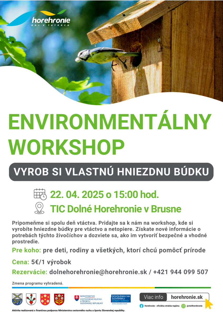 Pripomeňme si spolu Deň vtáctva a pomôžme prírode. Príďte na kreatívny workshop, kde si vyrobíte búdku pre vtáctvo a netopiere a dozviete sa zaujímavosti o ich živote.