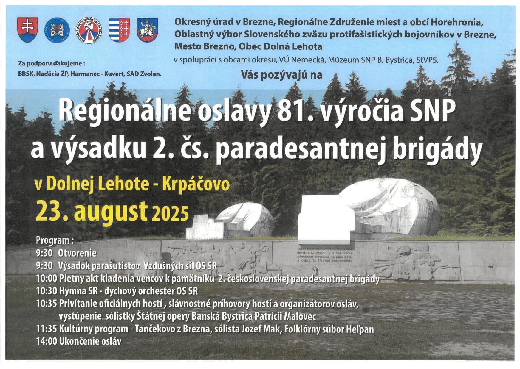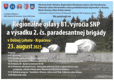 | Regionálne oslavy 81. výročia SNP | 23.08.2025 09:30 | 0.00€ |