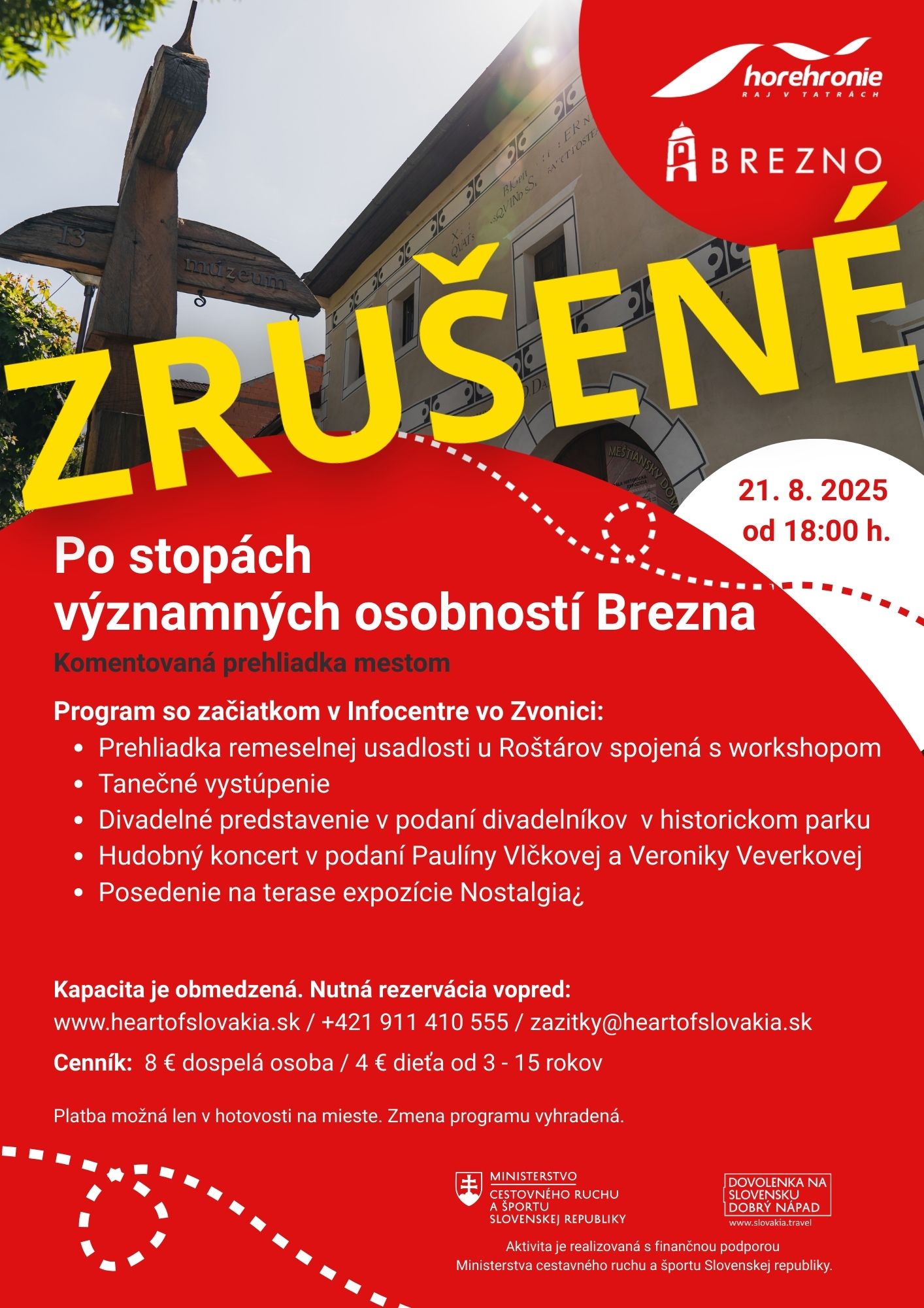 | Po stopách významných mešťanov mesta Brezna | 21.08.2025 18:00 | 0.00€ |