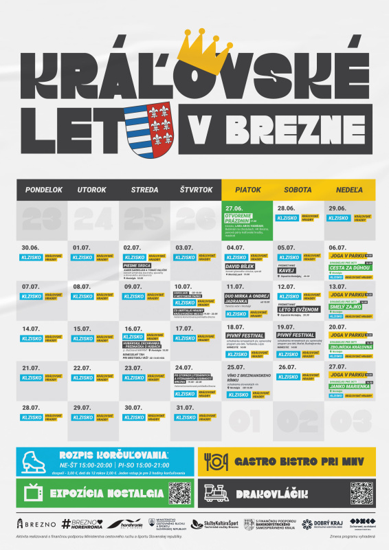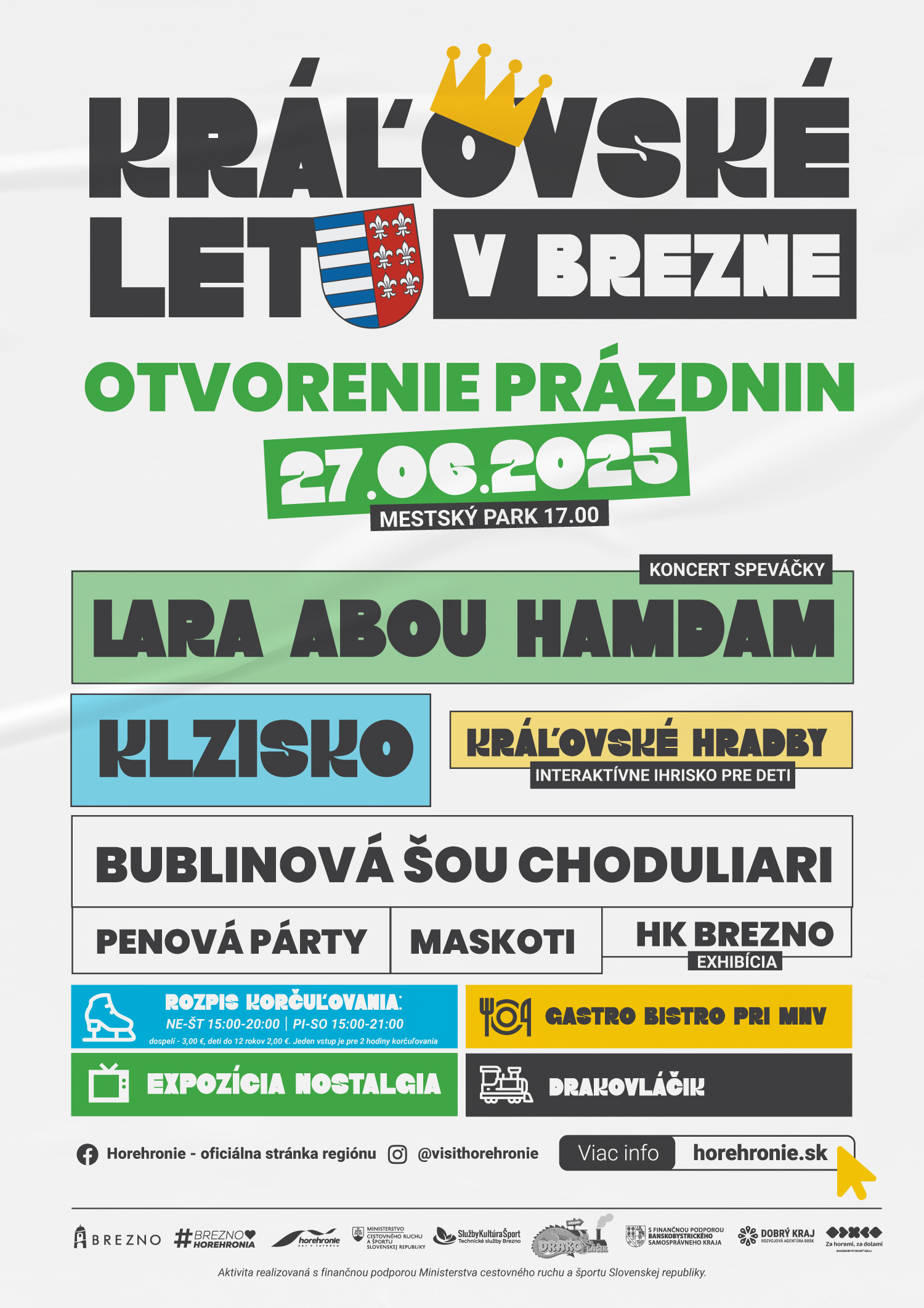 | Otvorenie Kráľovského leta v Brezne | 27.06.2025 17:00 | 0.00€ |