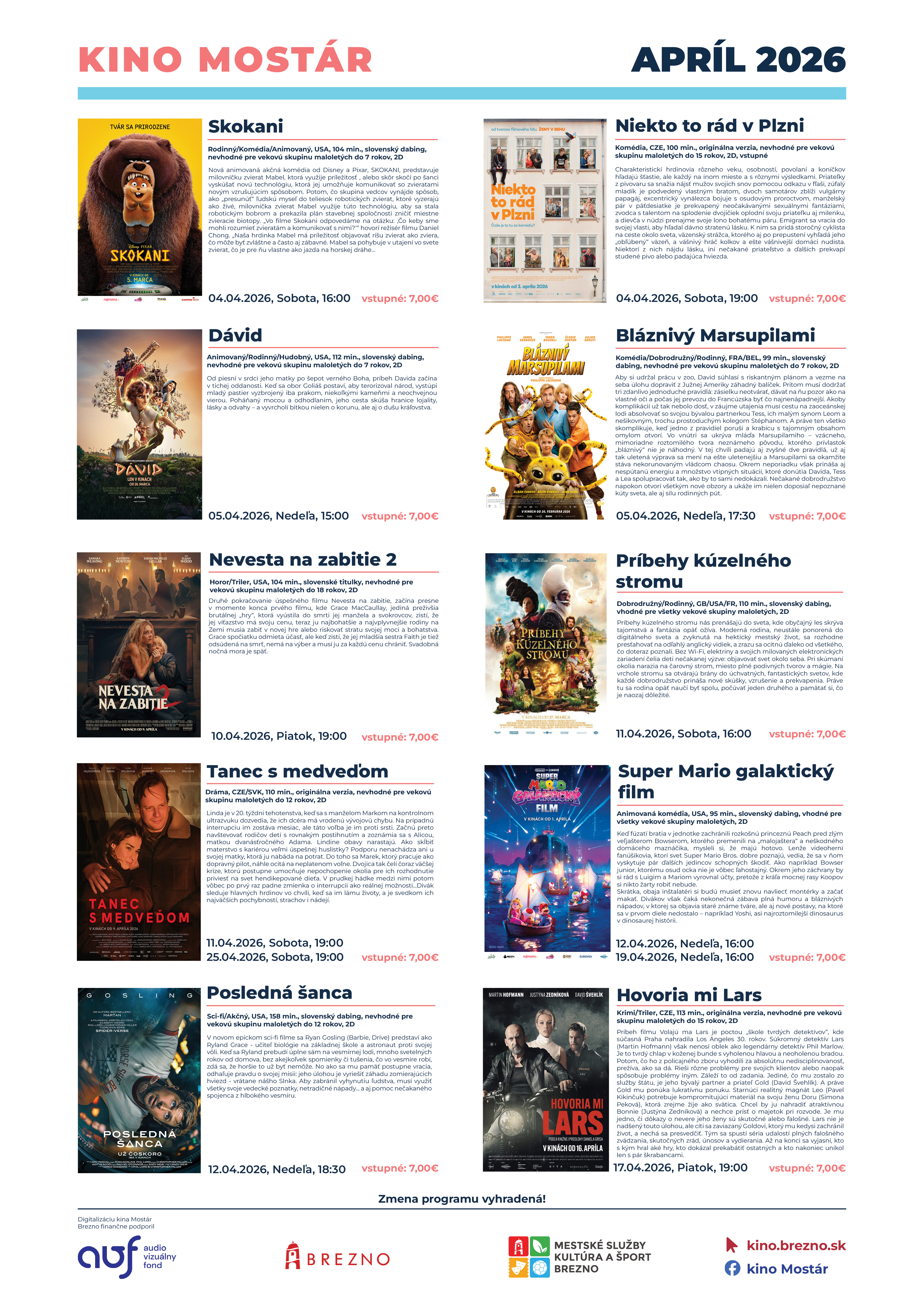 Príjmite pozvanie na pestrú ponuku noviniek zo sveta filmov v mesiaci apríl 2026 pre každú vekovú kategóriu.